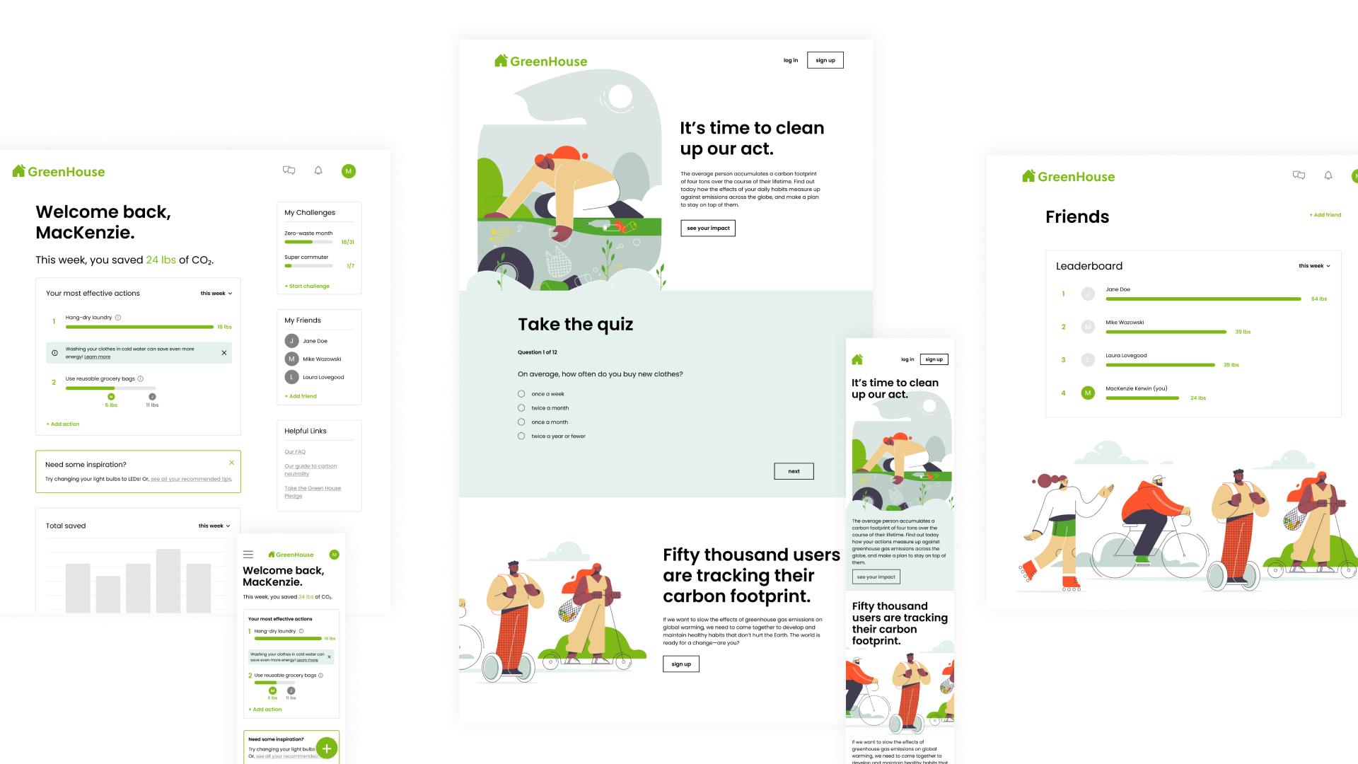 An exploration of interaction design, this project consisted of a responsive prototype for a personalized carbon footprint tracker.